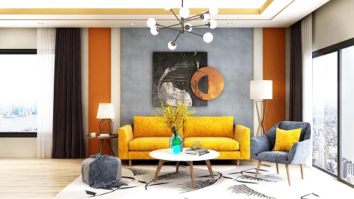 藍、橙、白三色勾勒的背景墻,很有層次感,時尚個性。一幅可以延伸室內空間感的裝飾畫,引人遐想,同時也凸顯客廳的美感。